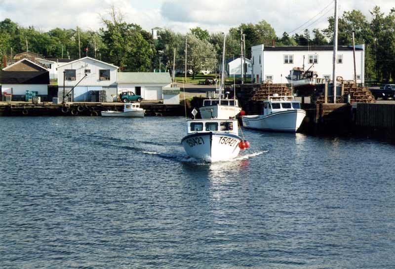 Fishing is an important industry of the area. Here a boat leaves the wharf enroute to check the fihserman's traps. Photo courtesy of Byron Jamieson