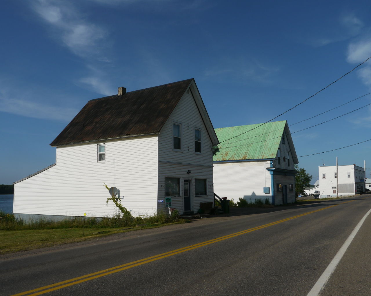 This street view shows the final three commercial buildings from the early 1900's when Wallace had a bustling row of businesses along its water front. Businesses operate in two of the three, with the centre one being the local Masonic Hall. Modern transportation and the lure of larger centres have taken its toll on the local retail trade. Photo courtesy of Paul Bloxsome.