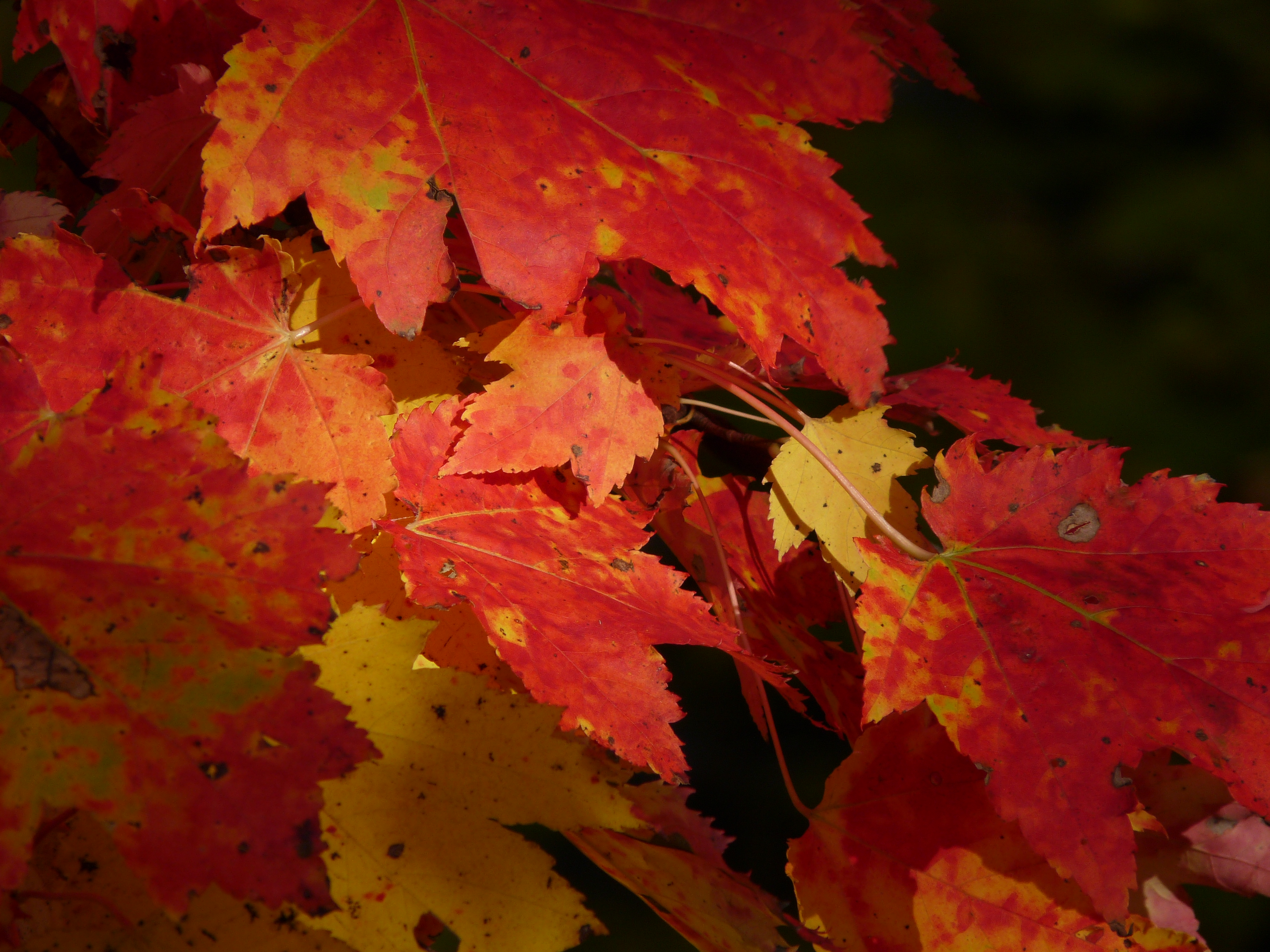 The darkness of the night can not completely hide the changing colours of this maple branch. Photo courtesy of Wayne Redmond